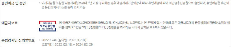 ▶ 이자지급을 포함한 최종거래일로부터 5년 이상 경과하는 경우 예금거래기본약관에 따라 휴면예금이 되어 서민금융진흥원으로 출연되며, 휴면예금은 휴면예금 통합조회서비스를 통해 조회 가능합니다.