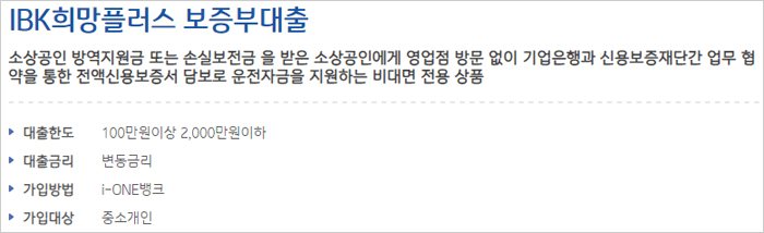 ◈ IBK기업은행 소상공인 희망대출플러스 특례보증 보증부대출