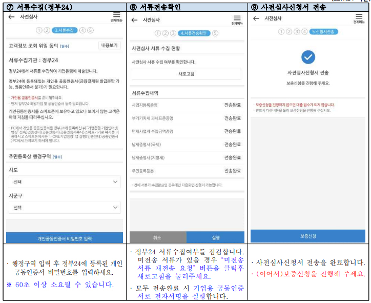 IBK기업은행 소상공인 희망대출플러스 특례보증 사전심사는 ① 메뉴선택 → ② 신청 전 유의사항 점검 → ③ 적합성 고객정보 확인서 작성 → ④ 자가진단 체크리스트 → ⑤ 정보제공동의 → ⑥ 휴대폰 본인인증 → ⑦ 서류수집(정부24) → ⑧ 서류전송확인 → ⑨ 사전심사신청서 전송 순으로 이뤄진다고 해요.