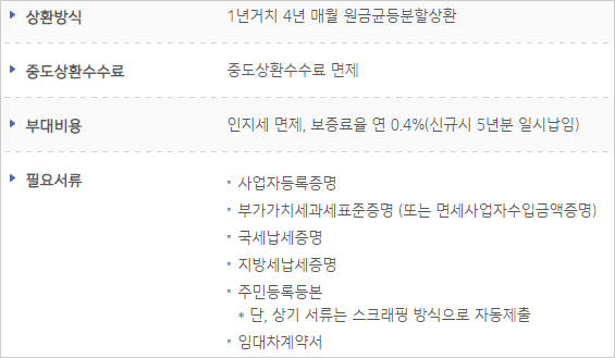 ▶ 인지세 면제, 보증료율 연0.4%(신규시 5년분 일시납임)