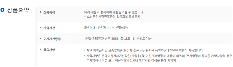 ▶ 상품특징 : 소상공인시장진흥공단 일상회복 특별융자 대출과 중복하여 대출 받을 수 없습니다.