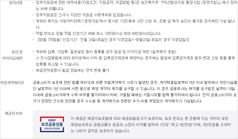 ▶ 이 예금 신규시 지정한 지원금 수령계좌로 입금됩니다.