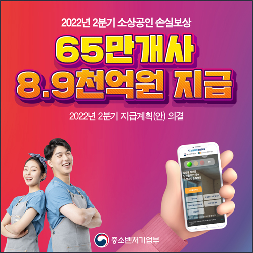 2022년 2분기 소상공인 손실보상금 신청 및 지급이 29일부터 시작됩니다. 29일 오전 9시부터 소상공인 손실보상금 신청 홈페이지(소상공인손실보상.kr)을 통해 온라인으로 보상금을 신청할 수 있다고 합니다. 이번 2022년 2분기 소상공인 손실보상금 신청 홈페이지 대상은 올해 4월 1일부터 17일까지 영업 시간 제한이나 시설 인원 제한 조치를 이행한 소상공인 및 소기업과 연매출 30억원 이하 중기업 가운데 매출이 감소한 65만곳이라고 합니다. 총 보상 금액은 8900억원 정도로 추정된다고 합니다.