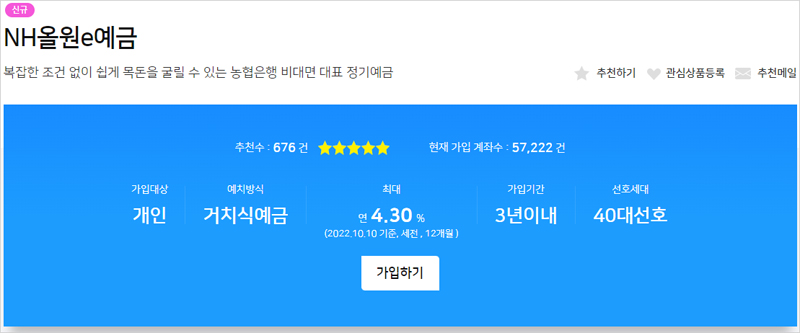 NH농협은행 NH올원e예금 특징