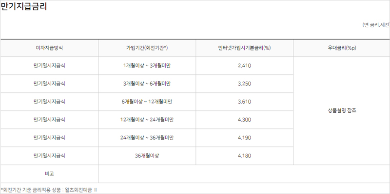 NH농협은행 NH올원e예금 금리 이자 이율 - 만기지급금리