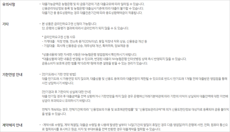 *대출상품에 대한 내용은 변경될 수 있으며, 변경된 내용이 NH농협은행 인터넷뱅킹 상에 즉시 반영되지 않을 수 있습니다.