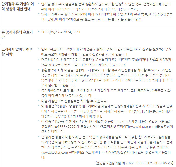 - KB 스타뱅킹 ▶ 전체메뉴 > 대출 > 관리 > 내맘대로통장자동대출 한도 증/감액)