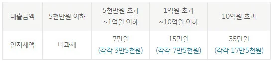 (1) 인지세 : 「인지세법」에 의해 대출약정 체결을 할 때 납부하는 세금으로 대출금액에 따라 세액이 차등 적용되며, 각 50%씩 고객과 은행이 부담