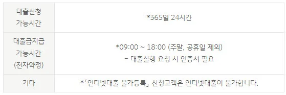 ▶ 대출기간 및 상환방법은 12개월이상~120개월이내(거치기간 없음), 원(리)금균등 분할상환으로서 통장자동대출은 운용이 불가능하다고 합니다.