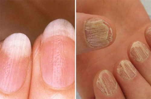 손톱으로 보는 건강상태 중 쉽게 갈라지고 부서지는 손톱은 갑상선 호르몬이 지나치게 분비되는 '갑상선 기능 항진증'과 관련이 있다고도 하는데요. 비타민A, B와 단백질이 부족하거나 무리한 다이어트로 인해 철분이 부족할 때, 매니큐어 리무버를 과도하게 사용했을 시에도 이러한 증세가 나타나구요. 손톱이 깨지는 증상은 세제나 네일광택제 등 화학 물질에 과다하게 노출됐을 때 나타나기도 한다고 해요. 해당 제품 사용을 중단하면 쉽게 증상이 개선된다고 하네요.