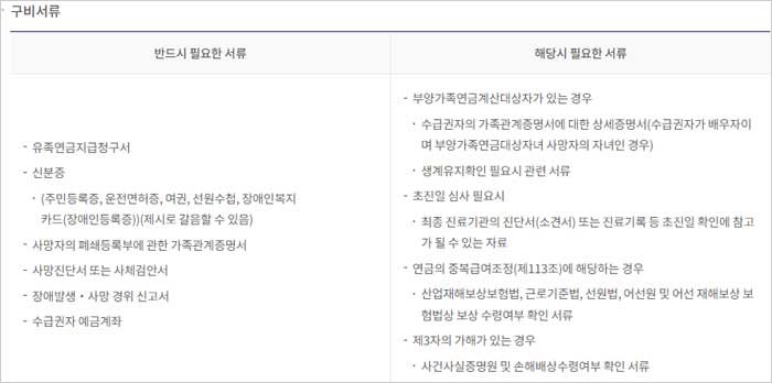 <국민연금 유족연금 신청서류>