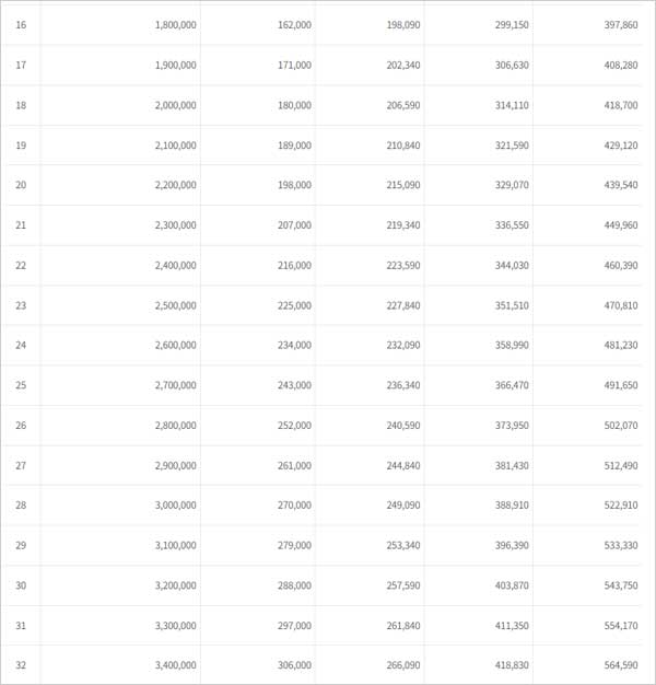 <국민연금 유족연금 예상연금월액표>