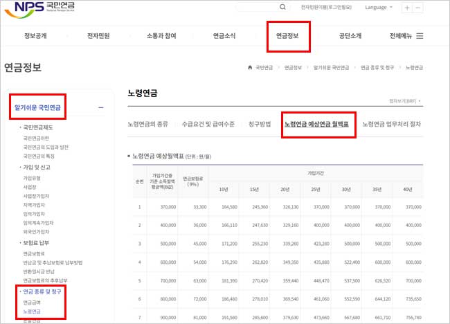 ◈ 국민연금 예상연금월액표로 알아보는 방법