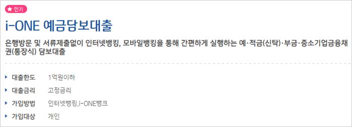 ▶ 은행을 직접 방문하지 않고, 인터넷뱅킹, 모바일뱅킹을 통해 간편하게 받을 수 있는 적금 예금담보대출상품이라고 합니다.