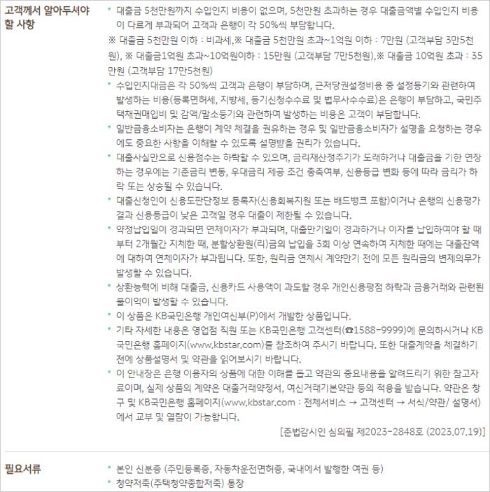 ▶ KB국민은행 청약저축 담보대출 필요서류로는