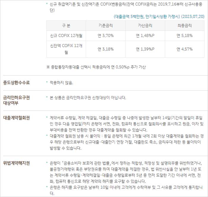- 대출사실만으로 신용점수는 하락할 수 있으며, 금리재산정주기가 도래하거나 대출금을 기한 연장하는 경우에는 기준금리 변동, 우대금리 제공 조건 충족여부, 신용등급 변화 등에 따라 금리가 하락 또는 상승될 수 있다고 합니다.