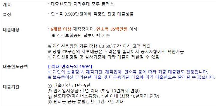 우리WON플러스 우리은행 직장인 신용대출 신청자격 대상