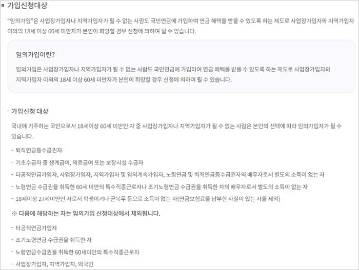 국민연금 임의가입 제외 대상