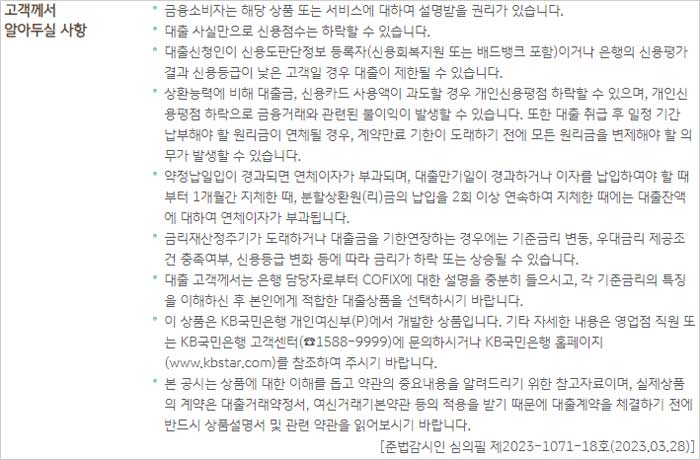 - 대출 신청시 은행 담당자로부터 COFIX에 대한 설명을 충분히 들으시고, 각 기준금리의 특징을 이해하신 후 본인에게 적합한 대출상품 선택이 필요하다고 합니다.