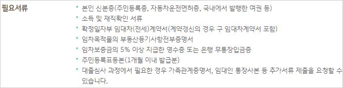 - 주민등록표등본(1개월 이내 발급분) 등이 필요하다고 합니다. 다만 대출심사 과정에서 필요한 경우 가족관계증명서, 임대인 통장사본 등 추가서류 제출을 요청할 수 있다고 합니다.