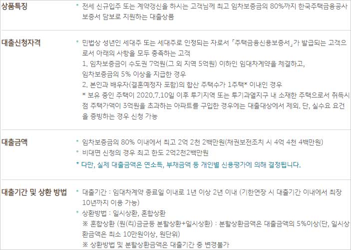 KB국민은행 전세자금대출 조건 신청 자격 대상