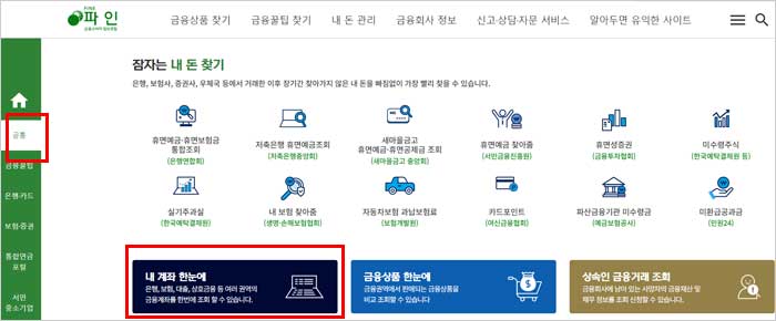 숨은 금융자산 찾기 파인 서비스 사이트 내 계좌 한눈에 조회 및 확인방법- 은행권