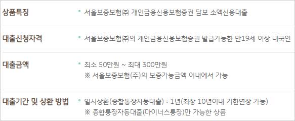 KB국민은행 비상금대출 신청 자격 대상 조건은 서울보증보험㈜의 개인금융신용보험증권 발급가능한 만19세 이상 내국인이라고 하구요. KB국민은행 비상금대출 한도 금액은 최소 50만원 ~ 최대 300만원이라고 하는데요. 다만 서울보증보험(주)의 보증가능금액 이내에서 대출이 이뤄진다고 해요.