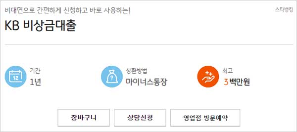 KB국민은행 비상금대출 신청자격 대상 및 한도 금액