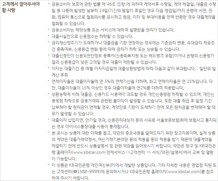 KB국민은행 비상금대출 금리 이자 이율 및 기한연장