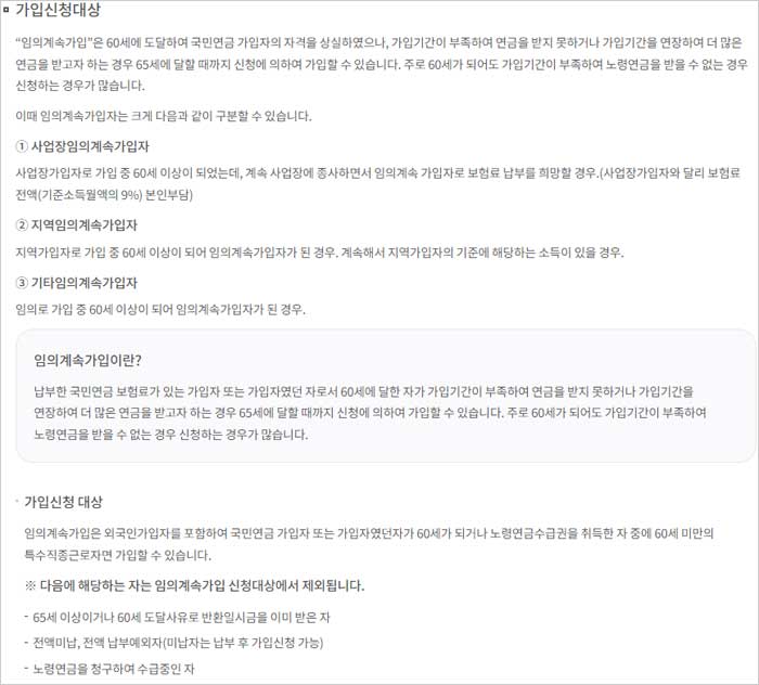 국민연금 임의계속가입제도 신청 대상 자격 및 제외대상
