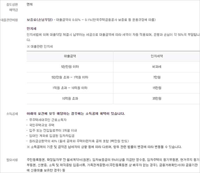- 보증료(고객부담) - 대출금액의 0.02%~0.1%(한국주택금융공사 보증료 등 운용규정에 따름)가 있다고 합니다.