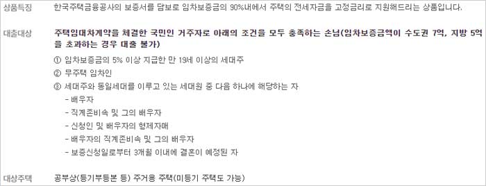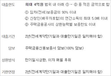 다만, 임차보증금액이 수도권 7억, 지방 5억을 초과하는 경우에는 대출이 불가능하다고 해요.