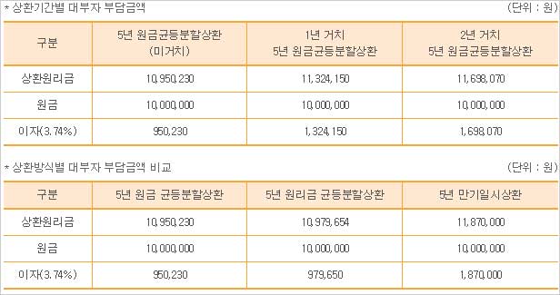 * 상환기간별 대부자 부담금액 및 상환방식별 대부자 부담금액은 다음과 같다고 합니다.