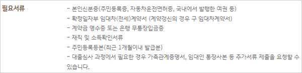 - 대출심사 과정에서 필요한 경우 가족관계증명서, 임대인 통장사본 등 추가서류 제출을 요청할 수 있다고 합니다.