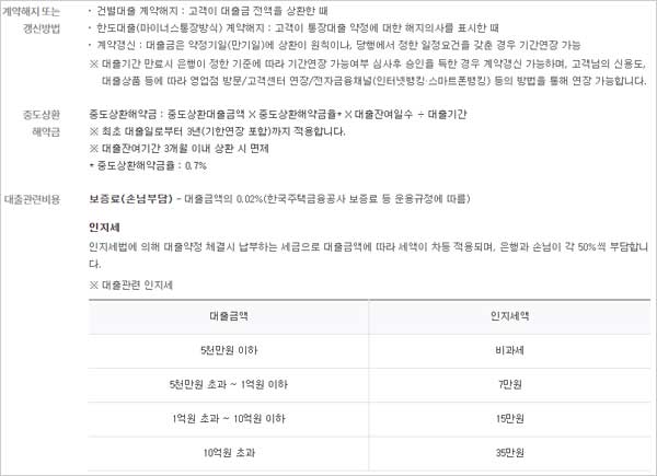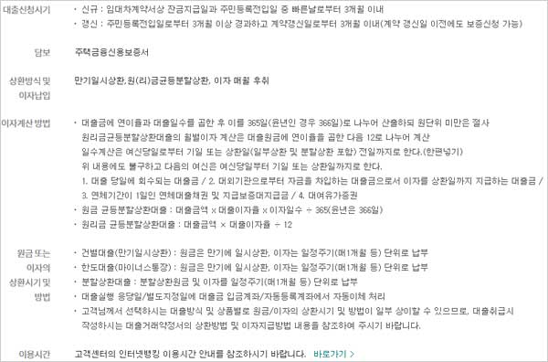 만기일시상환, 원(리)금균등분할상환 방식이며 이자는 매월 후취한다고 합니다.
