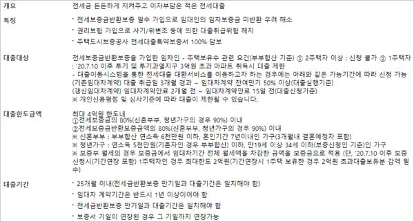 다만 주택보유수 관련 요건(부부합산 기준) 중 ① 2주택자 이상은 신청이 불가하며 ② 1주택자여도 2020.7.10 이후 투기 및 투기과열지구 3억원 초과 아파트 취득시 대출이 제한된다고 합니다.