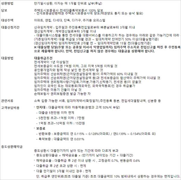 ▶ 담보는 주택도시보증공사 전세대출특약보증서 100% 담보라고 하며 전세보증금반환채권 주택도시보증공사에 양도(채권양도 통지 또는 승낙 필요)해야 한다고 합니다.