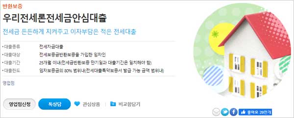 ▶ 우리은행 전세금안심대출 금리 이자 이율 및 우리은행 전세금안심대출 상품에 대한 홈페이지 내용은 다음과 같은데요. 참고하셨으면 좋겠습니다.