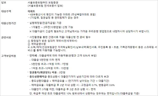 ▶ 담보는 서울보증보험의 보험증권(서울보증보험 전세보증서 담보)이며 ▶ 우리스마트전세론 우리은행 전세자금대출 한도금액은 서울보증보험 보증한도 범위 내 최대 5억원(임대차계약서상 임차보증금의 80%이내)이라고 합니다.