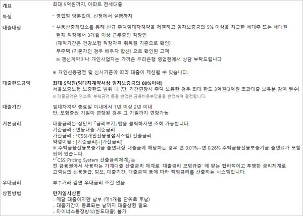 기타 자세한 상품정보 및 대출신청 문의는 영업점 직원 또는 우리은행 고객센터(1599-5000 또는 1588-5000)에 문의하거나 우리은행 홈페이지를 참조하면 된다고 합니다.
