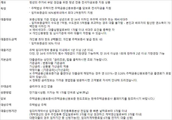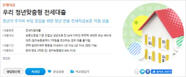▶ 우리은행 청년 맞춤형 전세자금대출 금리 이자 이율 및 대출 유의사항 등 우리은행 청년 맞춤형 월세대출 상품에 대한 홈페이지 내용은 다음과 같은데요. 참고하셨으면 좋겠습니다.