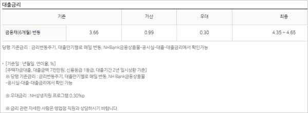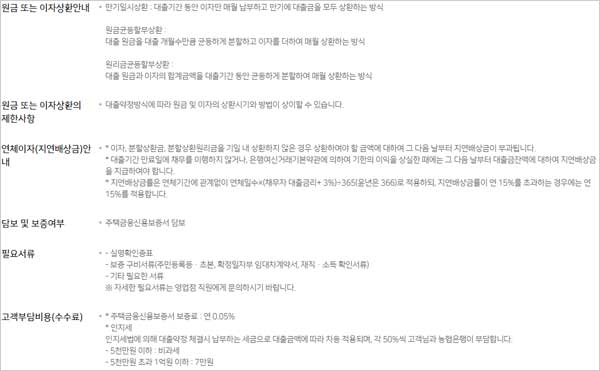 ▶ NH농협은행 신용평가 결과 등에 따라 대출이 일부 제한될 수 있으며 대출한도는 주택금융신용보증금액에 따라 달라질 수 있다고 합니다.