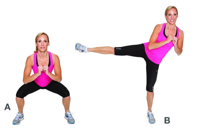 스쿼트와 발차기를 합친 동작이다. 무릎을 접었다가 펴면서 일어나는 반동으로 힘껏 발차기를 한다.
