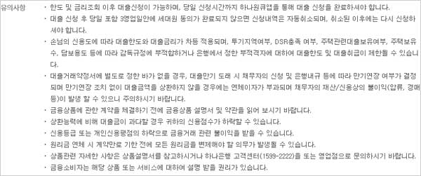 ▶ 대출 유의사항으로는