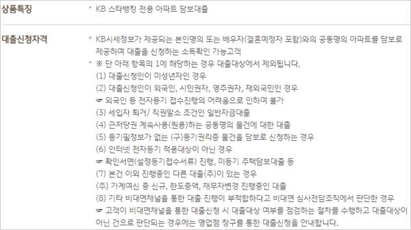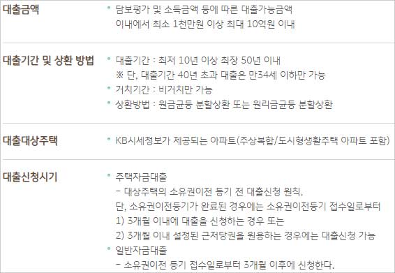 ▶ 국민은행 아파트 담보대출 신청 대상 자격 조건은