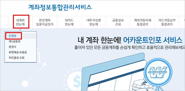 내 계좌 한눈에 홈페이지 내계좌 통합조회 관리 서비스 사이트 내 계좌 한눈에 조회 및 확인방법 - 은행별 활동성 및 비활동성 계좌 확인