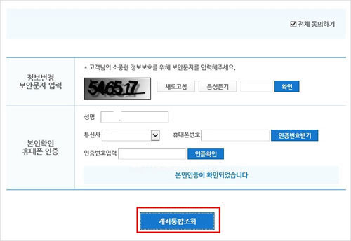 내 계좌 한눈에 홈페이지 조회 및 확인방법 - 개인정보 동의