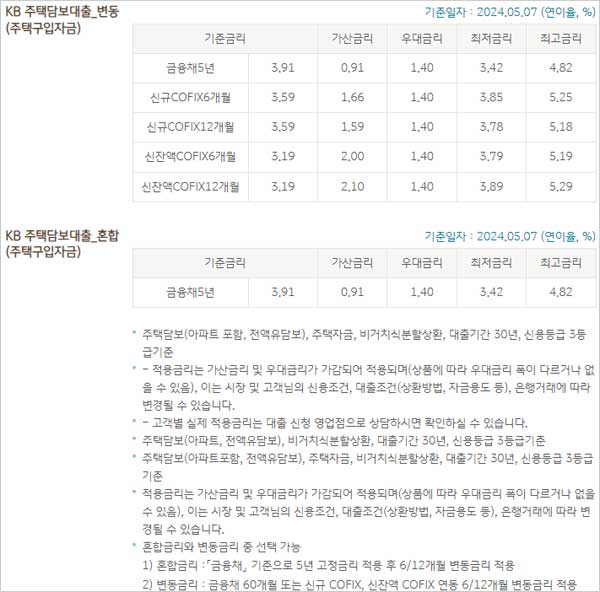 혼합금리와 변동금리 중 선택이 가능한 국민은행 주택담보대출 한도 및 국민은행 주택담보대출 필요 서류, 국민은행 주택담보대출 중도상환수수료는? 금리 이자 이율, 대출금액, 대출기간은 어떻게 되나요? 담보, 상환방법, 중도상환수수료, 부대비용, 대출 유의사항 알아보기