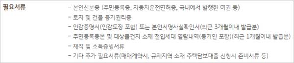 - 기타 추가 필요서류(매매계약서, 규제지역 소재 주택담보대출 신청시 준비서류 등) 등이라고 해요