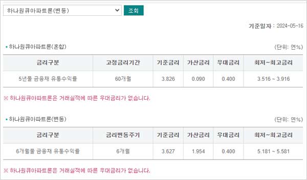 <하나원큐 아파트론 아파트담보대출 한도 금액 및 금리 이자 이율, 신청 대상 자격 조건, 필요서류, 대출기간은?>
